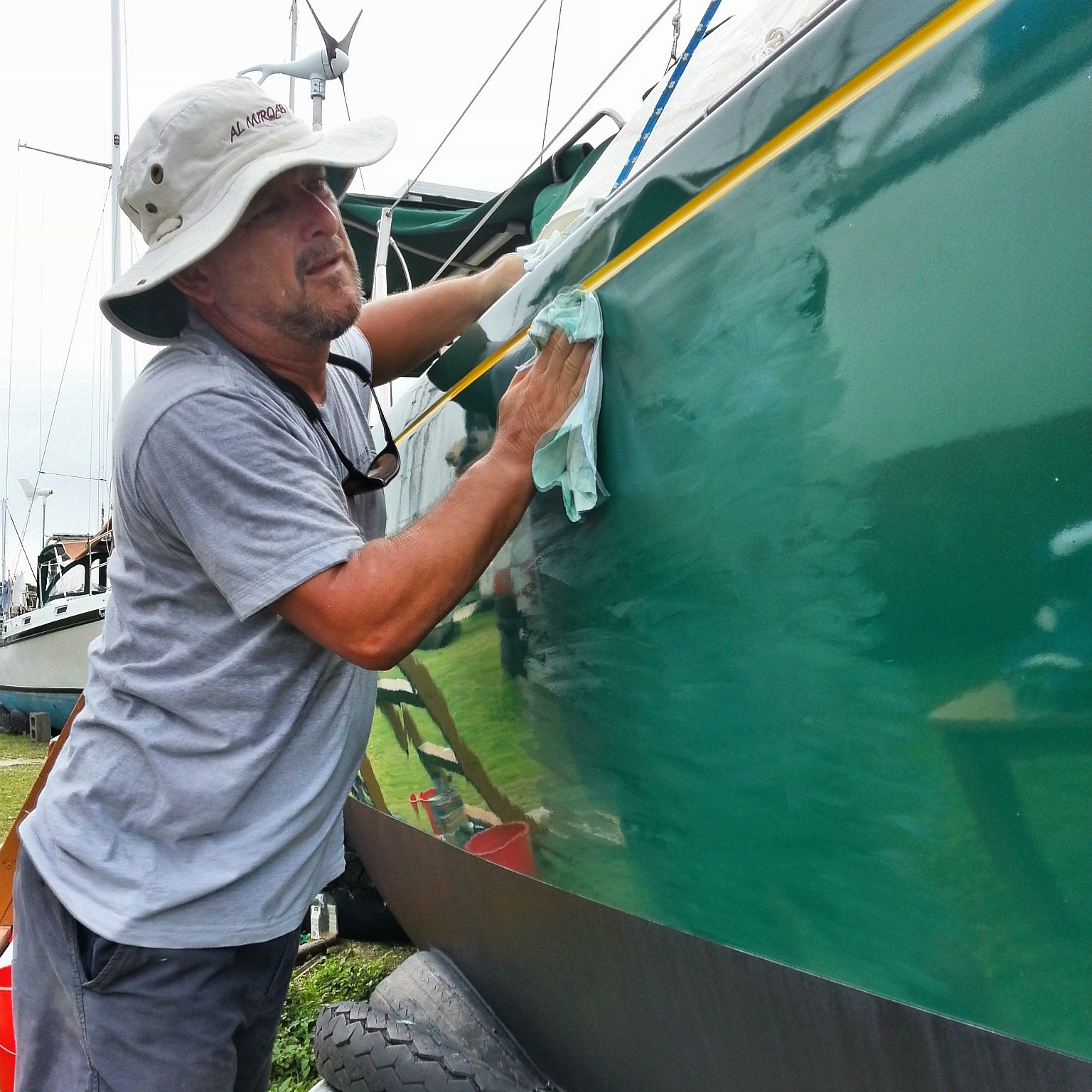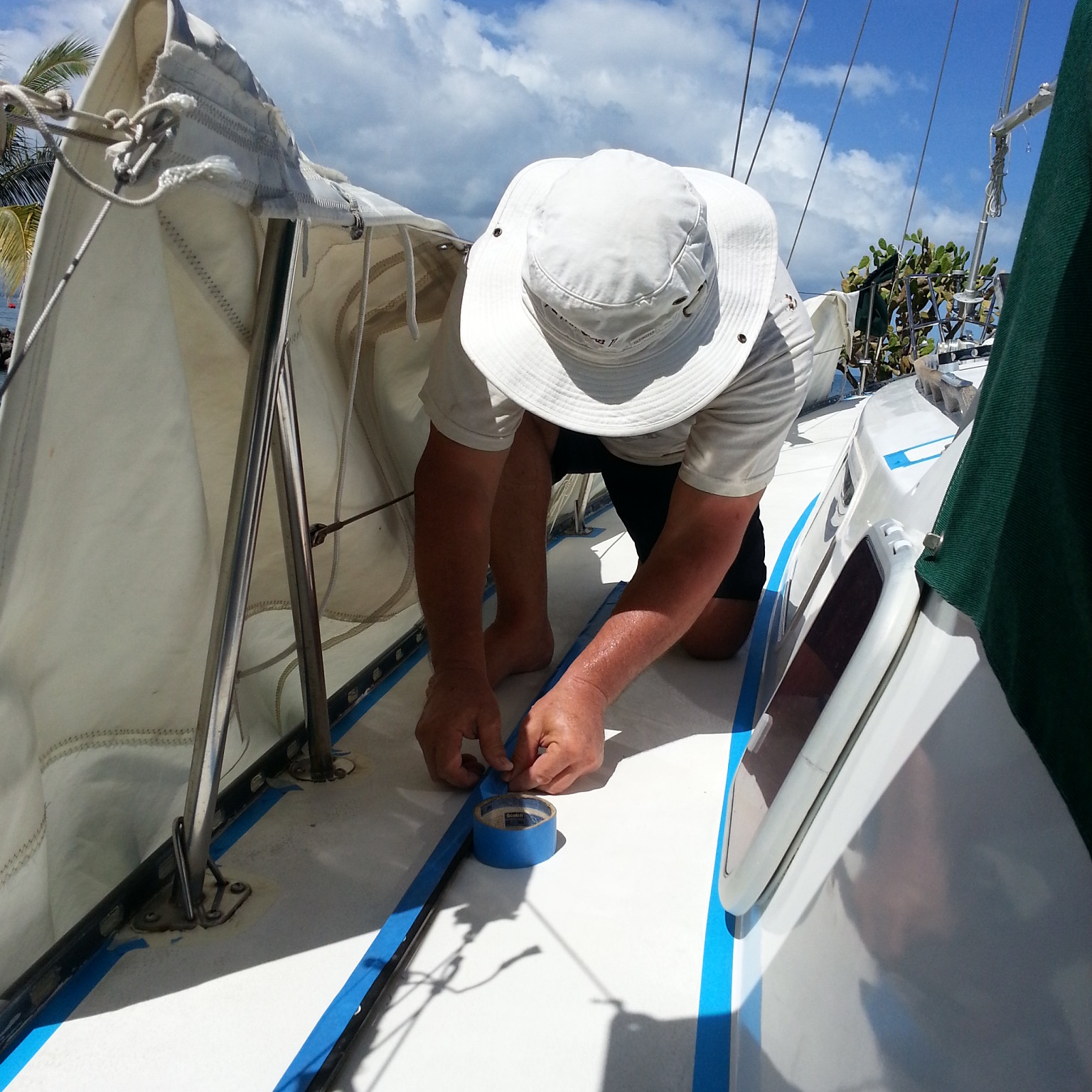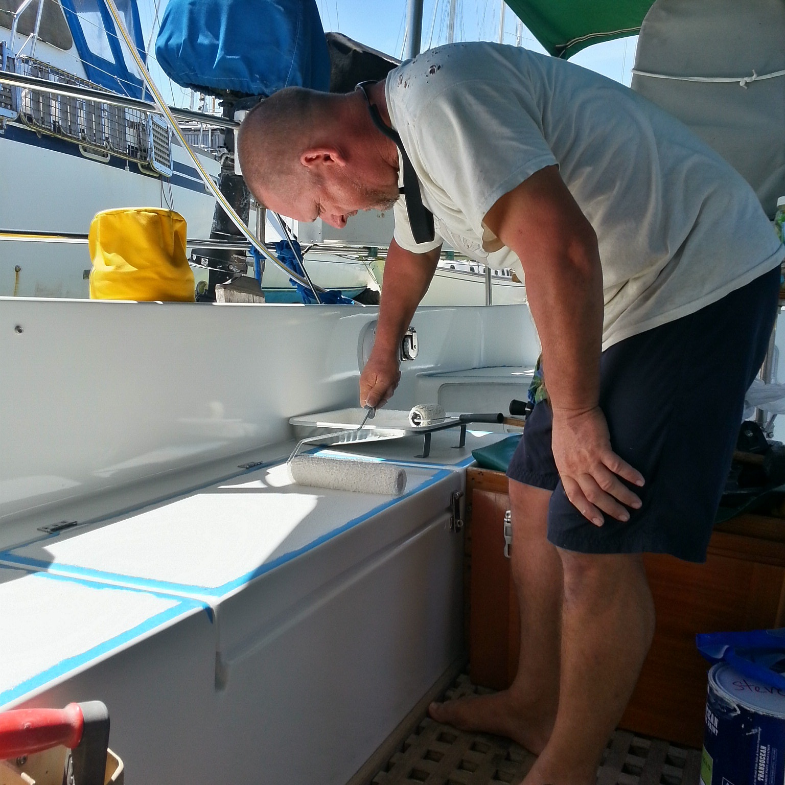 Trying to do semi impossible things like paint on a new coat of anti-foul while still in the hole.