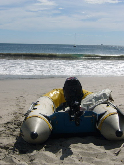 The zodiac was a soft dinghy, the kind that has interlocking floor boards that when removed allow the boat to be deflated and rolled up. This also meant it had very little keel and as a result was a little squirrely to drive. It was dependable, it had character and was slightly unpredictable. We named it Timmy (yes, we were watching a lot of South Park at the time).