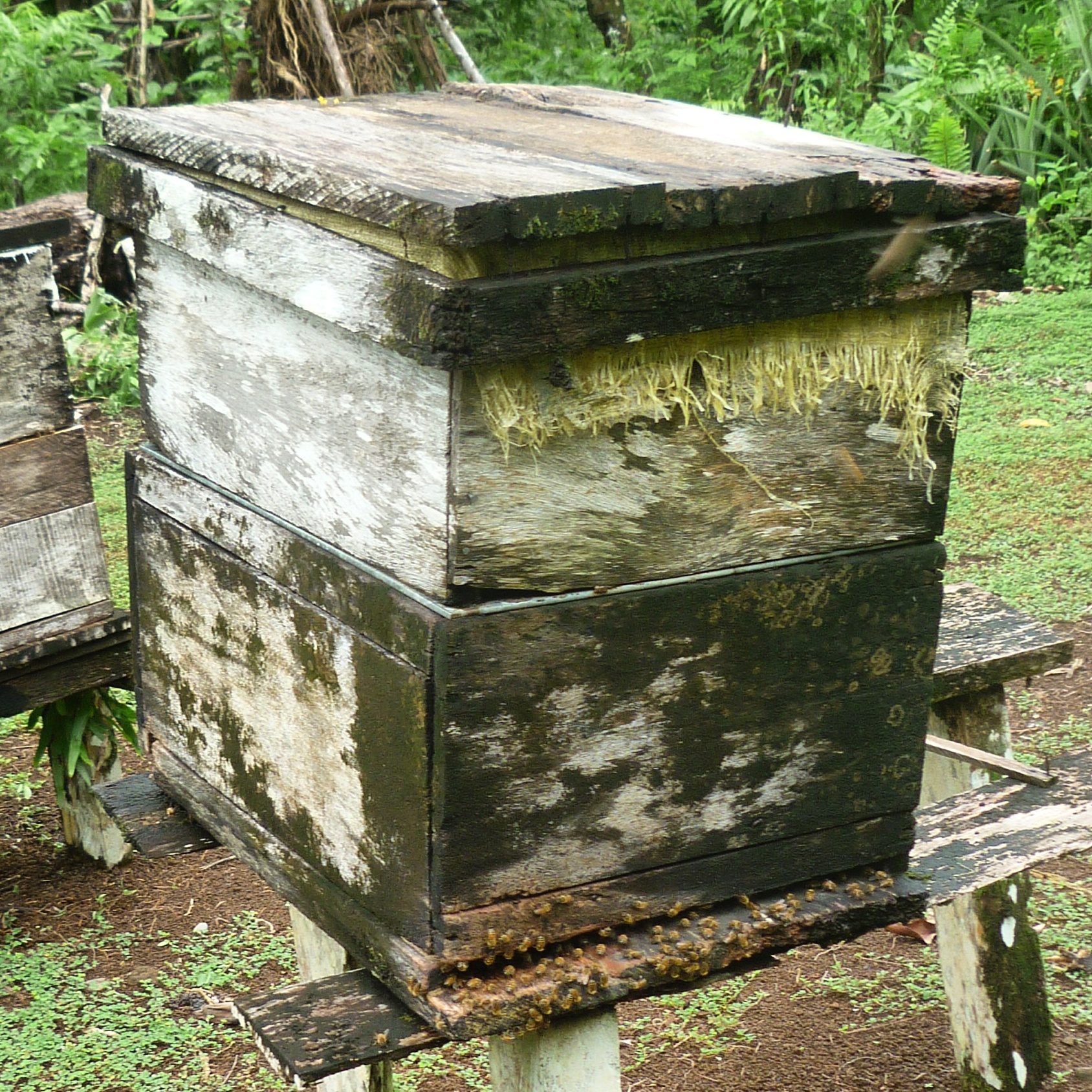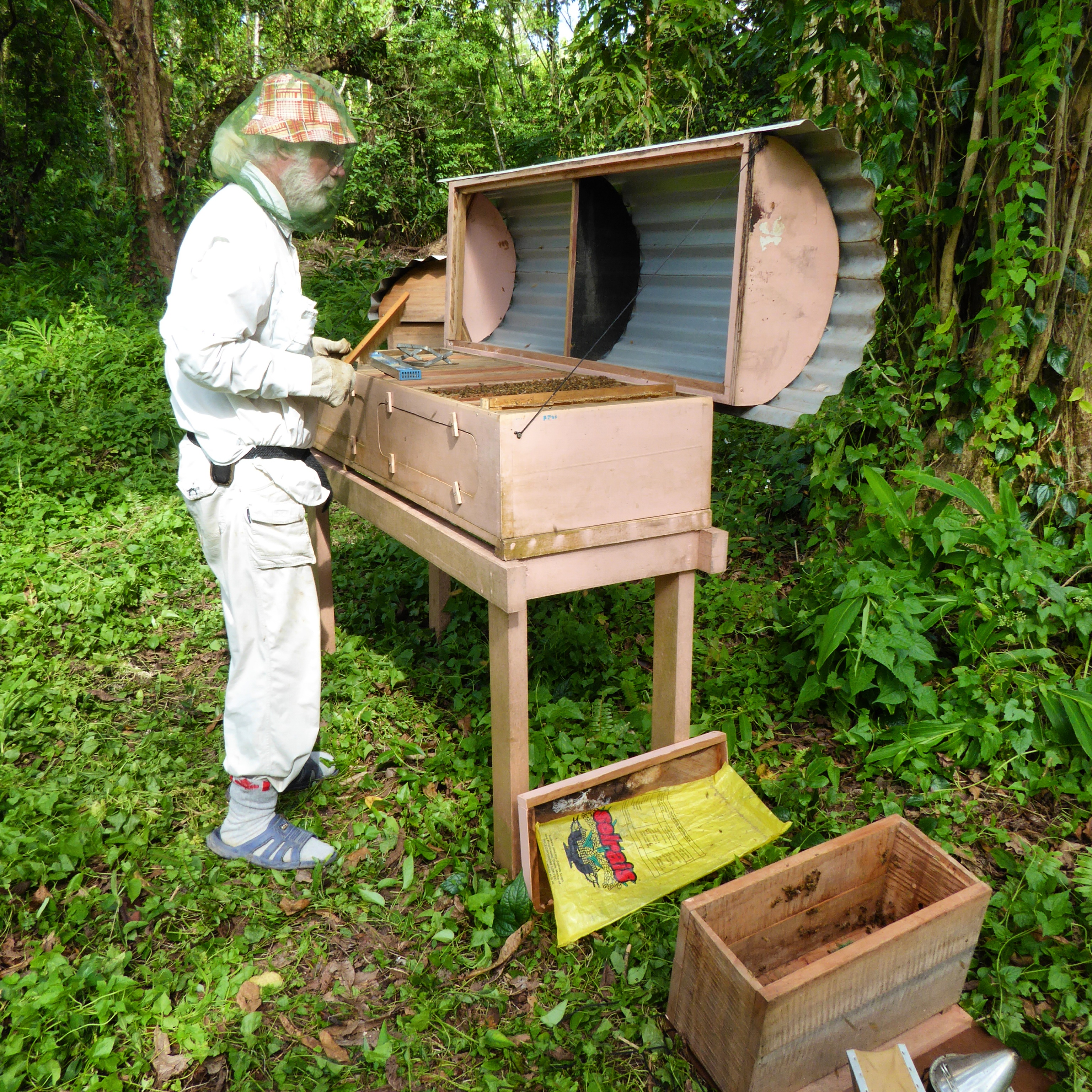 A local man had a couple of hives in his backyard that over looked the anchorage. His property was more or less just a well maintained garden brimming with budding trees, pineapple plants and tropical flowers nestled into rolling hillside covered in wild forest. His English wasn’t great but I gathered that his two hives yielded about 5 gallons of honey when he harvested every 3- 4 months.