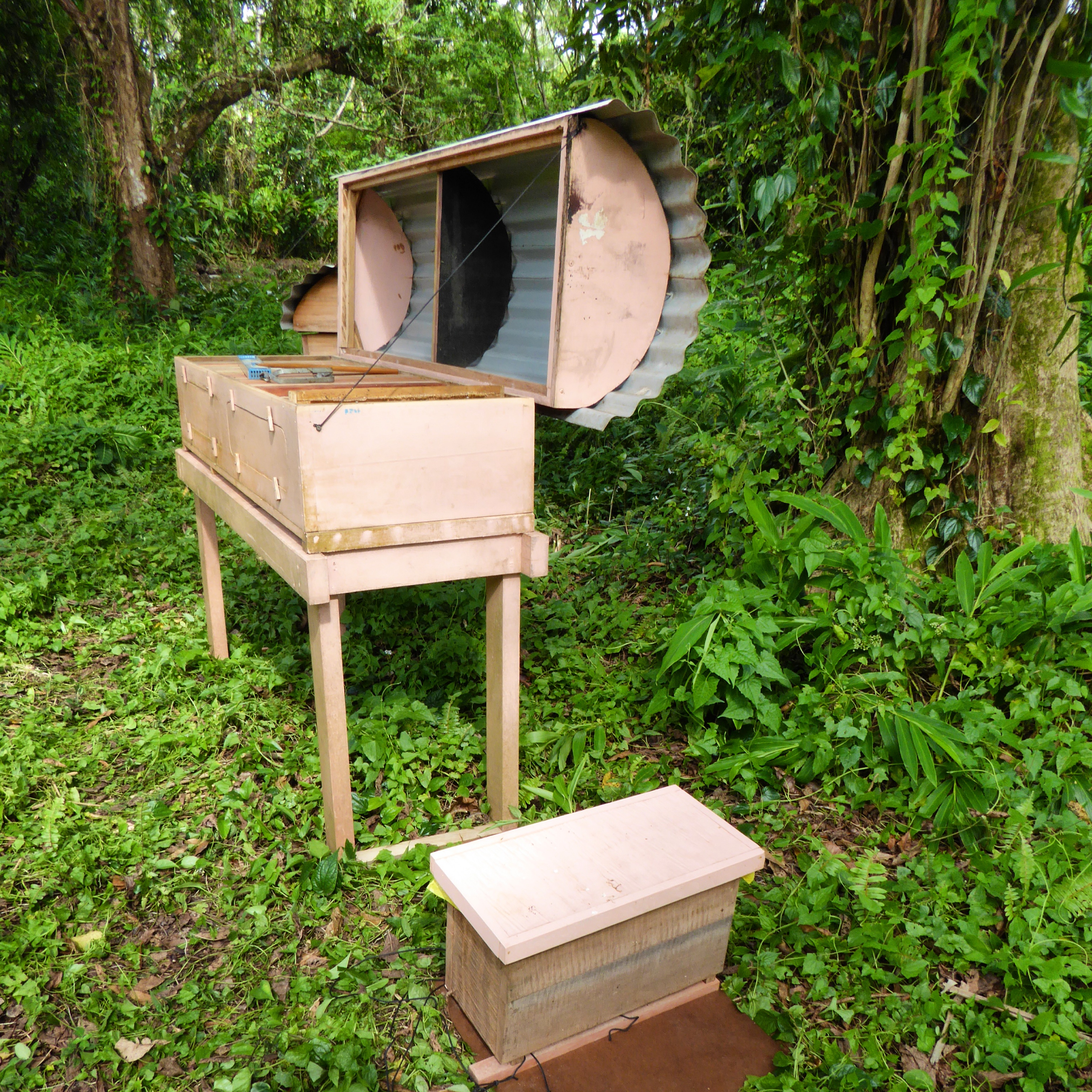 While we were stationed at Liapari I had the opportunity to help out a local bee keeper who had recently moved a hive onto the island. Living on a neighbouring island he was not able to monitor the hive. My job was simply to keep an eye on the hive; make note of the activity of the bees, check on their fresh water supply and report back to Patrick, the bee keeper, when I went to Gizo on the weekly provisions run. Not only was I interested in watching the bees and their potential honey production but was happy to help out Patrick, who happens to be my wontok.