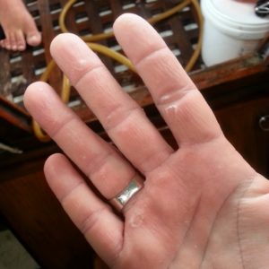 New Caledonia, Photography, Sailing Passage Picts Posted by Heather Francis on May 17, 2015August 22, 2018 A few pictures from the passage, I wanted to take more but it was too wet for any electronics outside. Raising the French flag while entering the reef pass in New Caledonia Wet, blistered and peeling hands Day One, the only Sunshine we saw Share this: Email a link to a friend (Opens in new window) Email Share on Reddit (Opens in new window) Reddit Tweet Share on WhatsApp (Opens in new window) WhatsApp Like this:Like Loading...